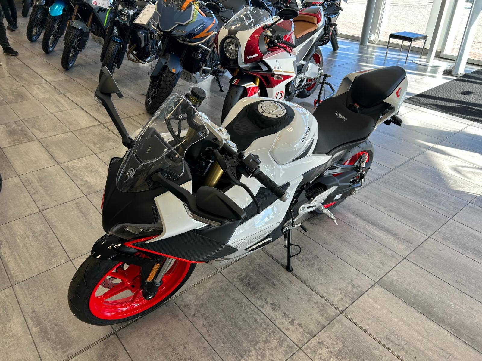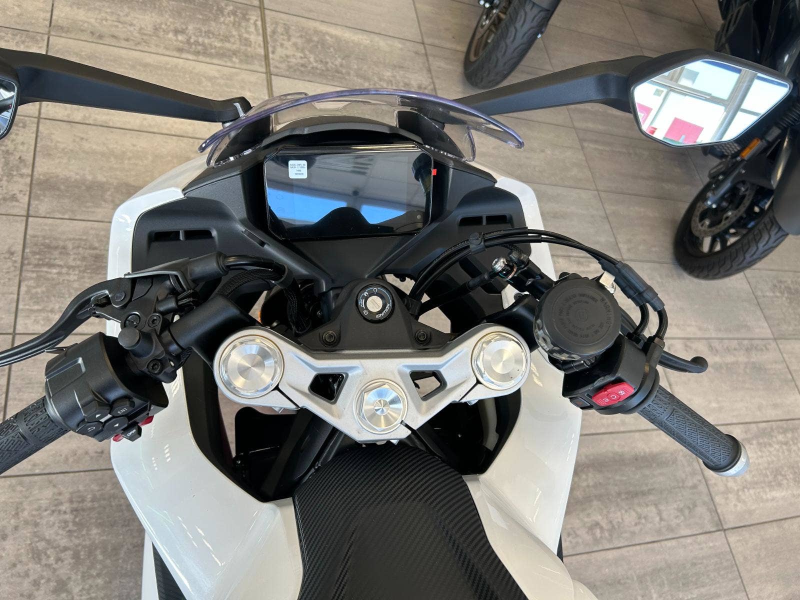 FEM analýza, aerodynamický tunel, magnézium, výrazy spojené se supersportovními motocykly nyní dostupné v kategorii A2. Hmotnost a ovladatelnost třístovek v ergonomii a designu nejvyšší ligy a na maximální možné hranici omezení třídy. V modelovém ročníku 2025 je motocykl vybaven systémem kontroly trakce (TC), novým systémem ABS Bosch pro zlepšení odezvy brzdné soustavy a vyšší brzdný účinek, světlometem s vyšší účinností a zkrácenou dráhou plynu pro zlepšení odezvy motoru na pokyny jezdce.