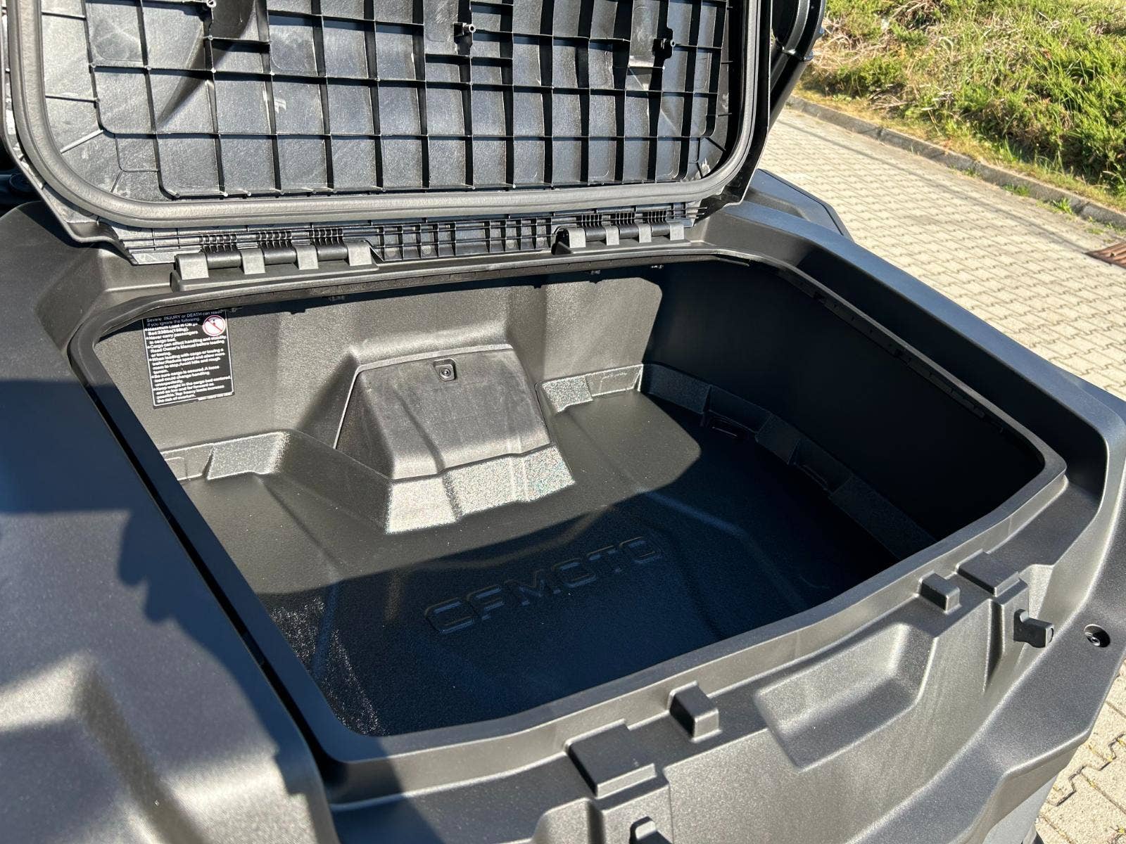 Komunikační jednotka T-Box zajišťuje přenos dat z vozidla do mobilní aplikace CFMOTO Ride. Zde je zobrazena poloha stroje, historie jízd a statistika, informace o stavu vozidla, upozornění na manipulaci se strojem a další informace. V aplikaci také naleznete novinky ze světa CFMOTO a informace o prodejcích a servisech. Součástí aplikace je také funkce MotoPlay, která umožňuje přenos naOKvigace z aplikace CFMOTO Ride na displej stroje.