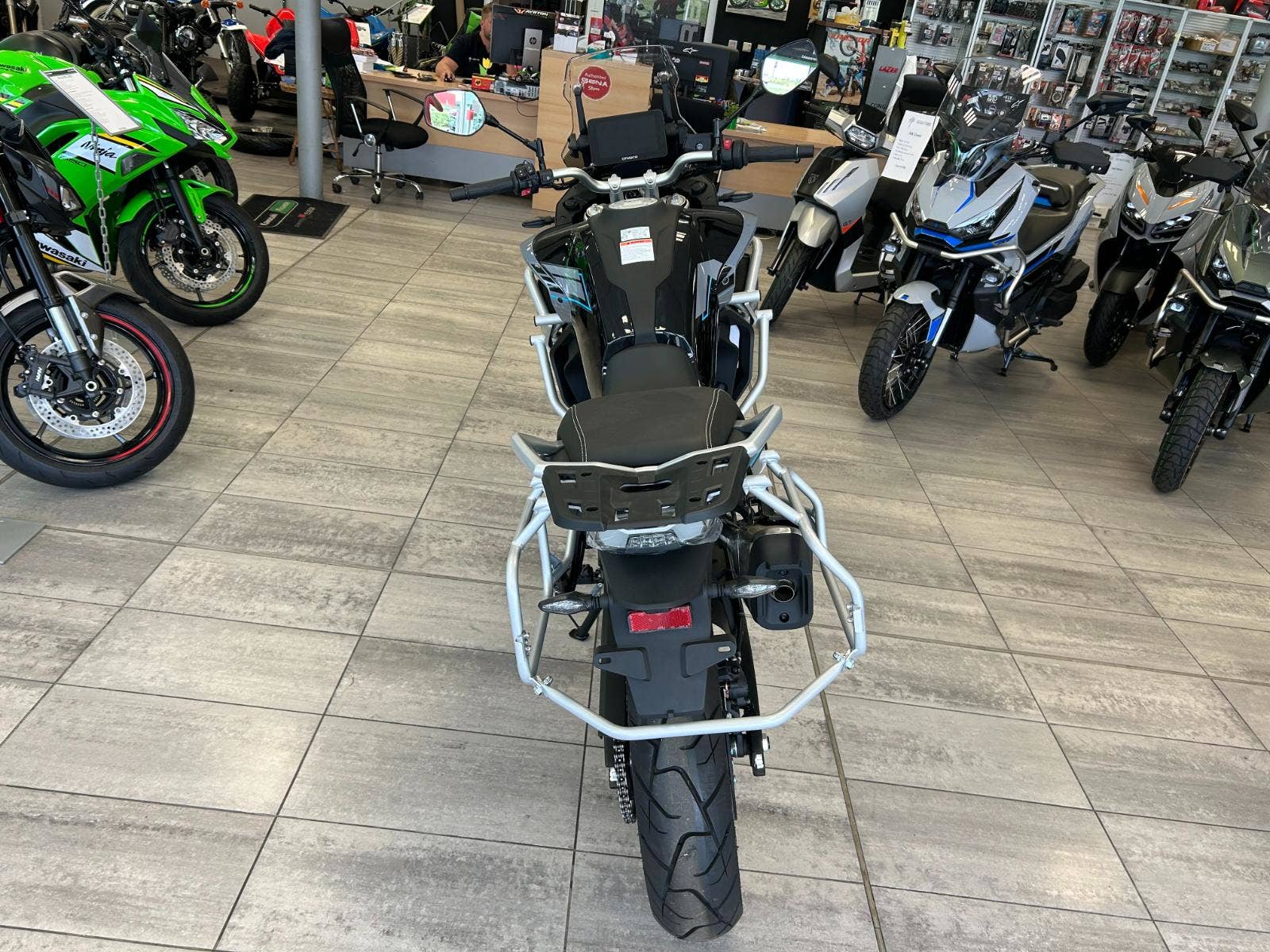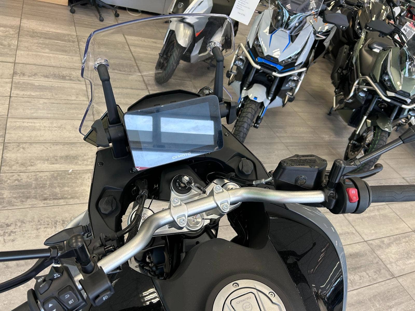 Barevný TFT displej s úhlopříčkou 7″ pro zobrazení všech jízdních údajů. Při párování mobilního telefonu umožňuje správu hudebního přehrávače a telefonního seznamu. Zobrazuje navigační pokyny z aplikace CFMOTO Ride.
