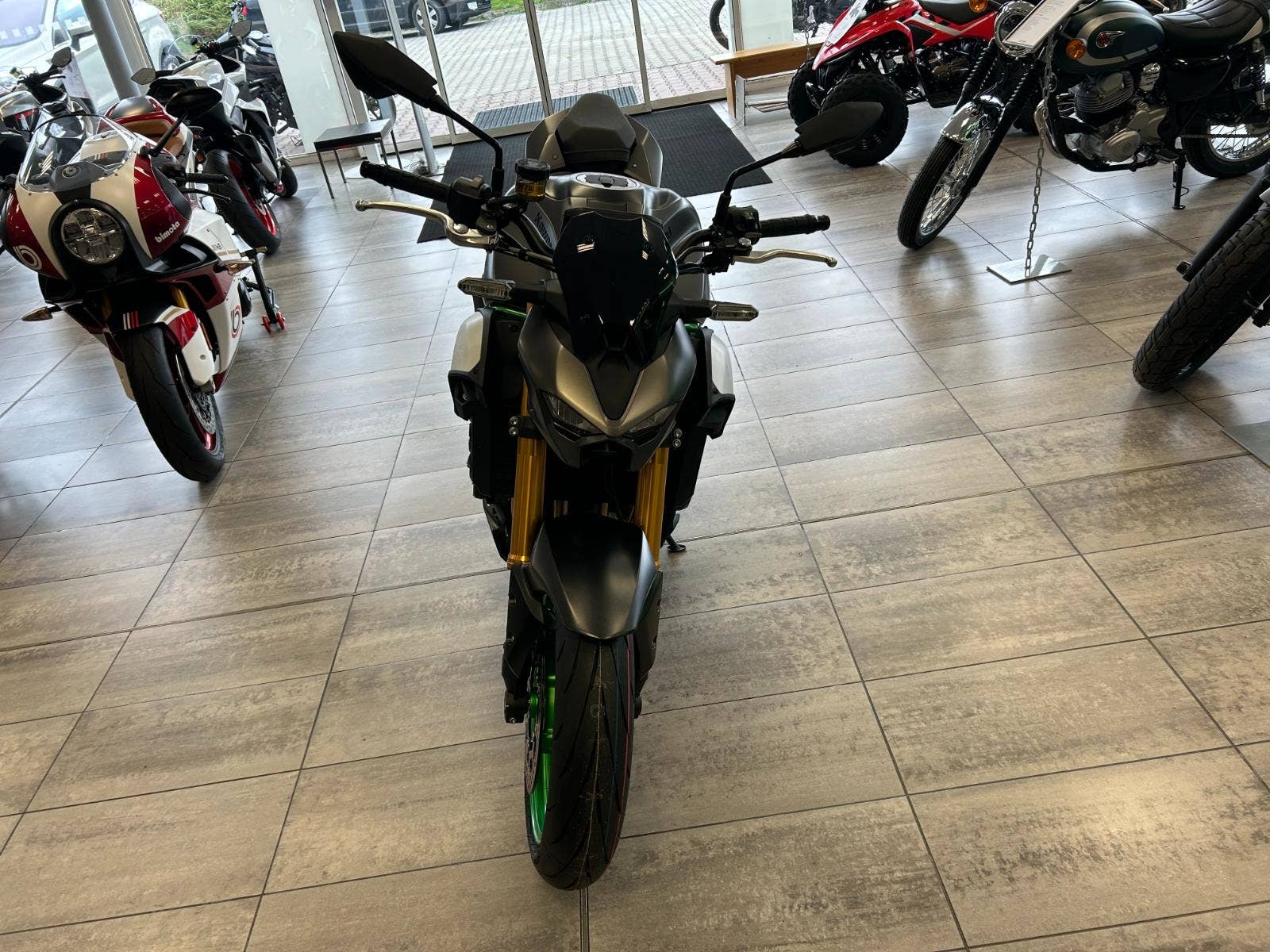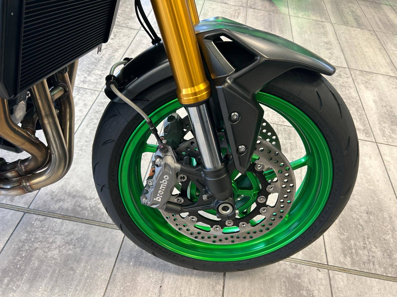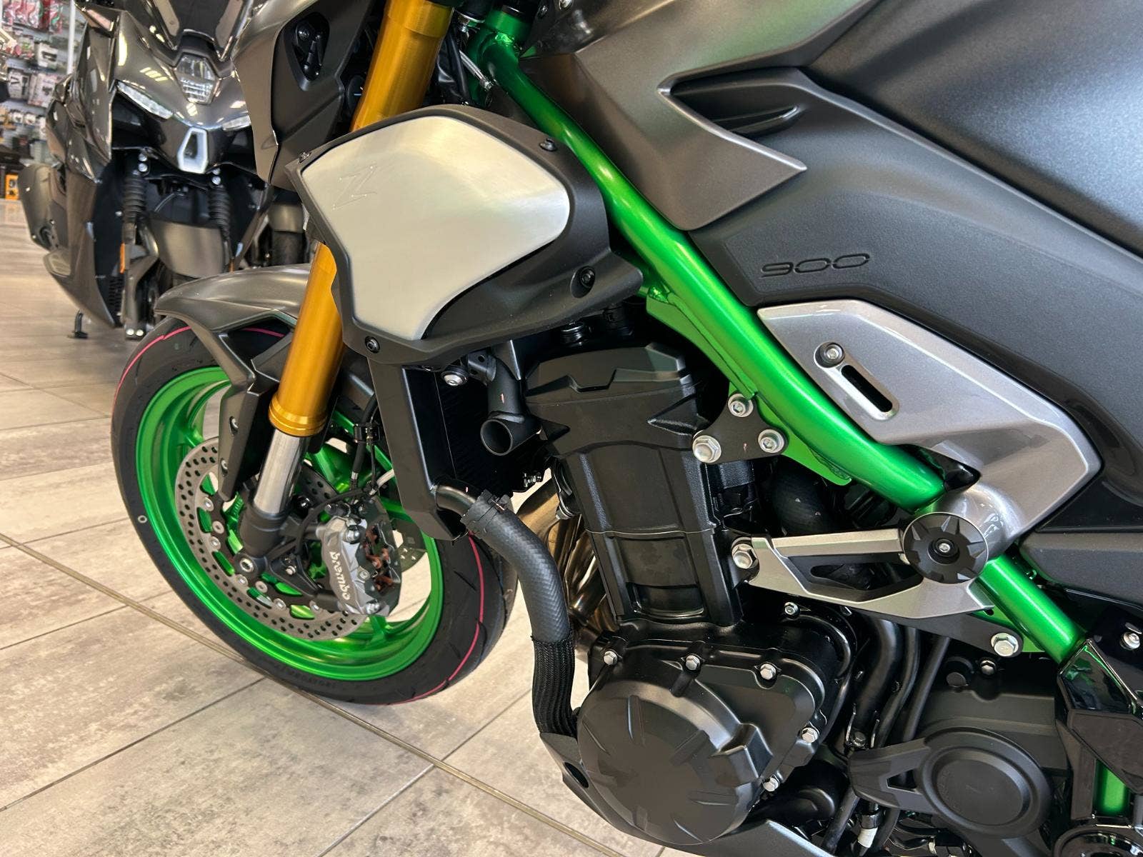 Novou Z900 SE brzdí přední kotouče od renomované firmy Brembo jež mají průměr 300 mm. Monoblokové třmeny s radiální montáží Brembo M4.32 (jsou stejné specifikace jako u kompresorové Z H2) a též značkové destičky jsou doplněné hlavní radiální pumpou Nissin a pancéřovými hadicemi s opletením z nerezové oceli. Tyto brzdy poskytují větší brzdnou sílu a také nabízí lineární brzdný účinek, což umožňuje přesné ovládání a perfektní cit na páčce přední brzdy.