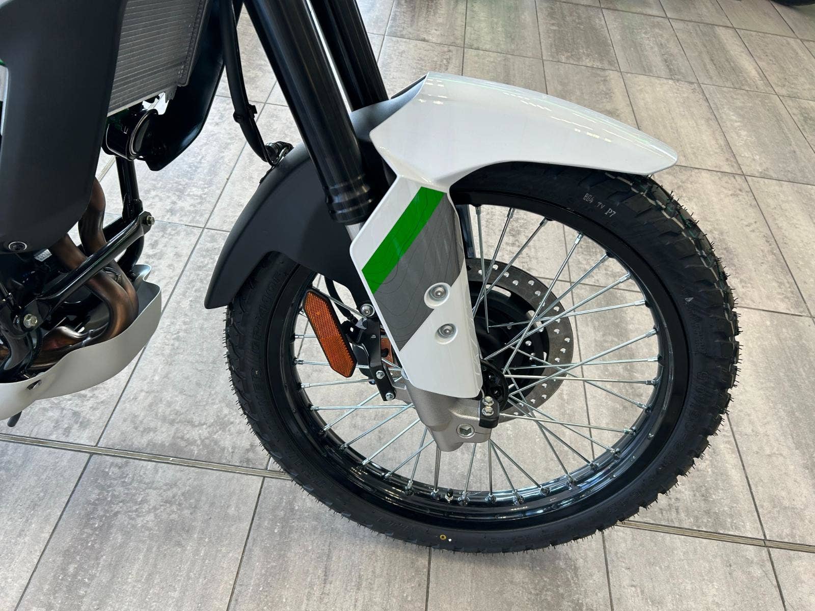 21” přední a 17” zadní drátěná kola dodávají nové KLE500 skutečný rallye vzhled a mimořádné terénní vlastnosti. Tato novinka tak navazuje tak na linii původní řady KLE od Kawasaki z roku 1991, která od začátku používala kombinaci kol 21”/17”.
