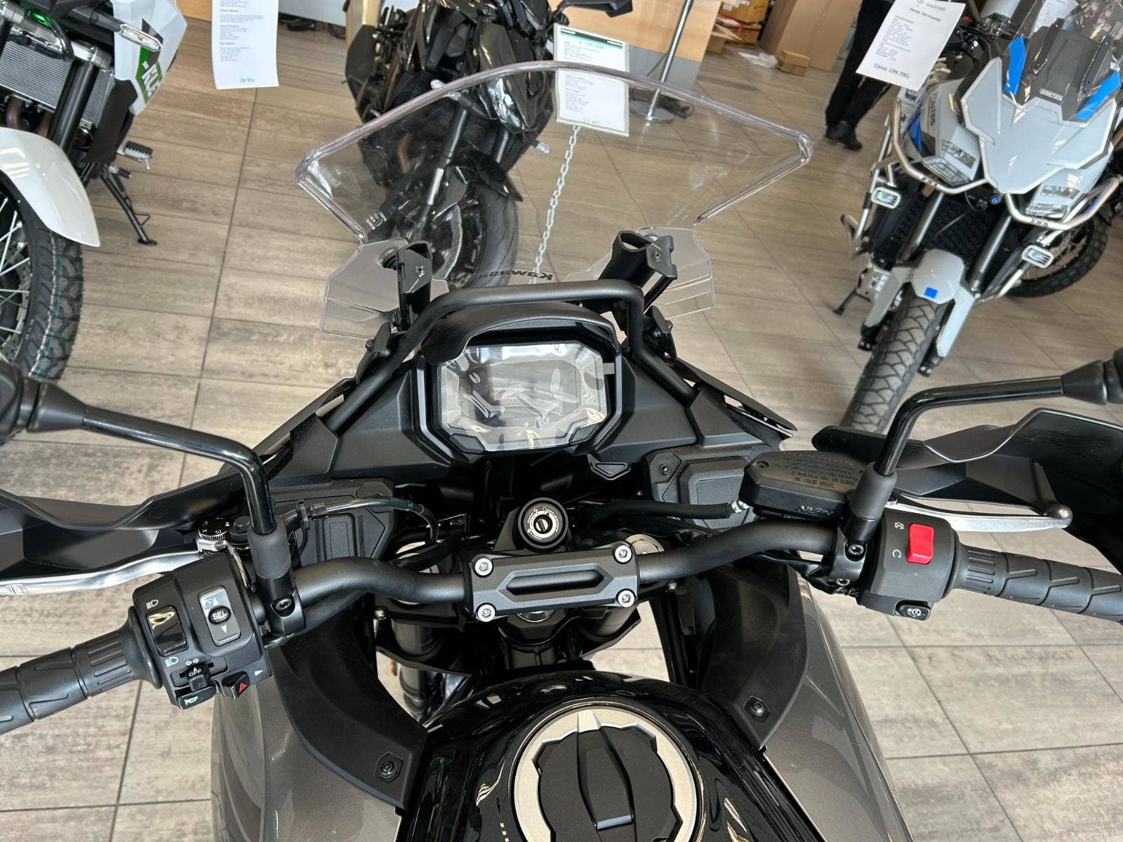 Spolu s přepracovanou maskou nabízí nový větrný štítek lepší ochranu před větrem, což přispívá k většímu pohodlí jezdce a zvyšuje potenciál Versyse 650 jako schopného partnera na dlouhé cesty. Štítek je nastavitelný ve čtyřech polohách a lze jej pohodlně nastavit i ze sedadla jezdce.