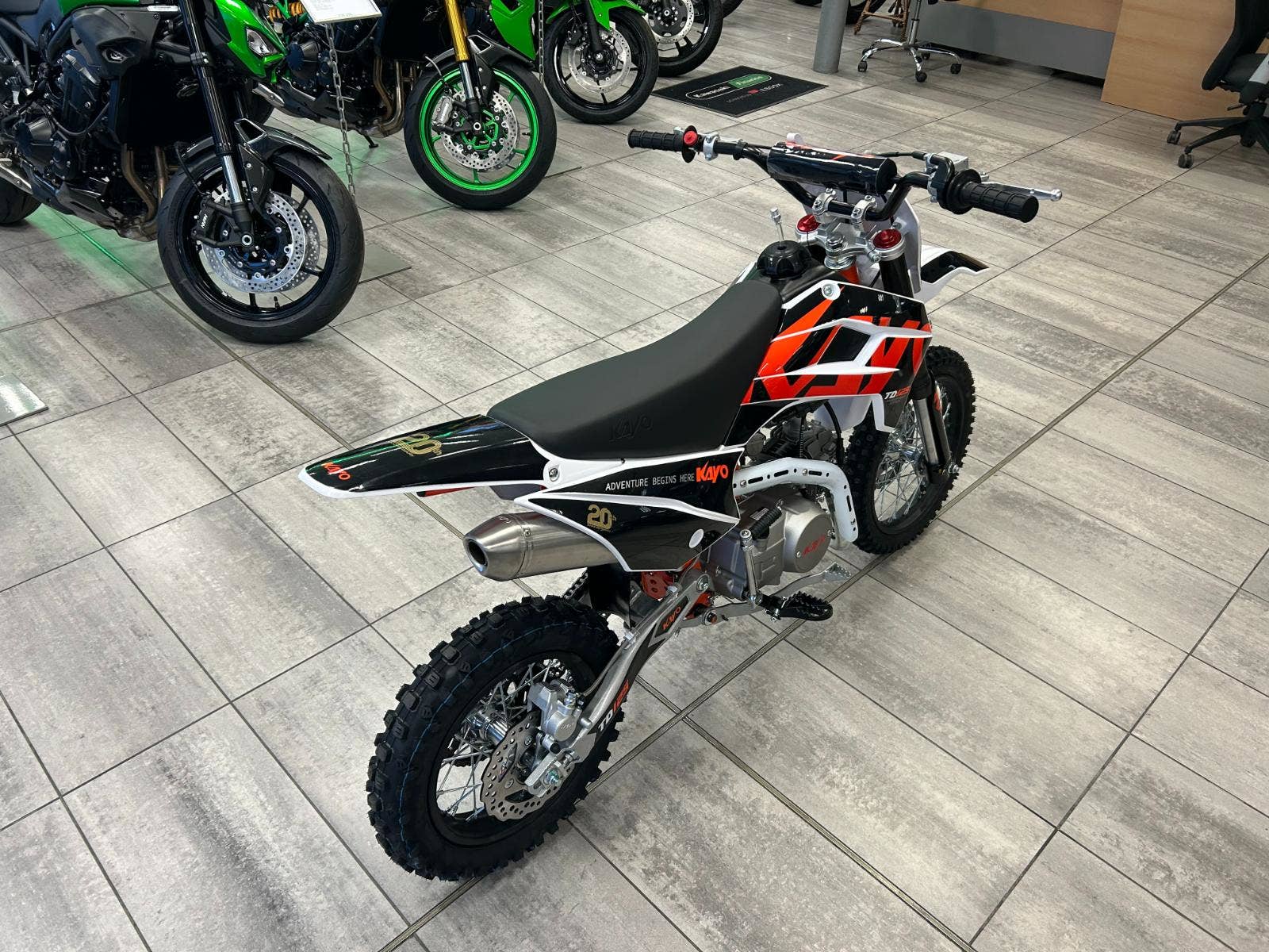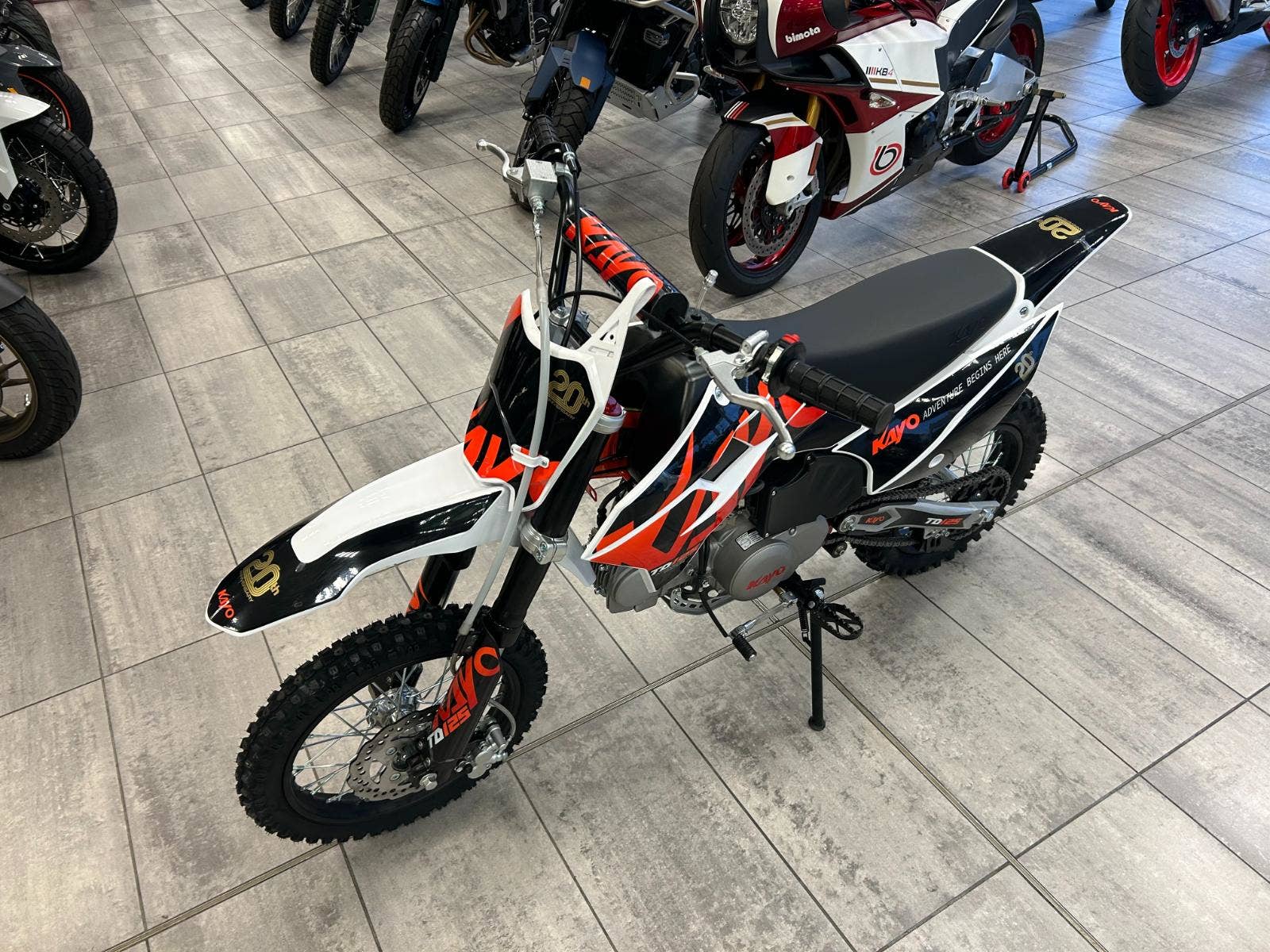 Motorka která tě nenechá v klidu! KAYO TD125 je ideální parťák pro všechny mladé jezdce, kteří chtějí okusit opravdový offroad! Lehký rám, ostrý čtyřtaktní motor Výkonný speciál s většími koly, vyšším posezem, USD (obrácenou) přední vidlicí, nízkou váhou a technicky sladěnými prvky – tohle je stroj, který tě okamžitě vtáhne do hry. Perfektní pro první kroky v terénu i pořádné řádění na trati. Spolehlivé brzdy, kvalitní odpružení a konstrukce, která něco vydrží.