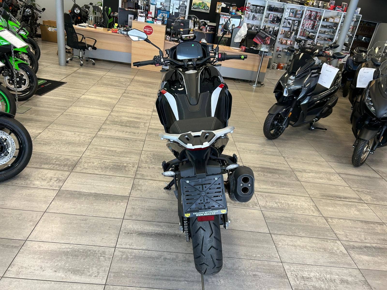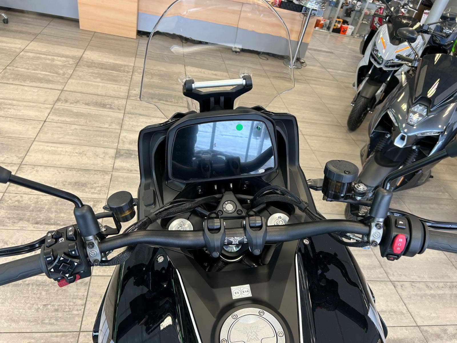 7“ TFT displej, obousměrné rychlořazení, centrální stojan, třístupňové vyhřívání rukojetí chráněných velkoplošnými blástry, vyhřívaná sedla řidiče i spolujezdce, jednou rukou nastavitelné plexi, tempomat, senzory tlaku v pneumatikách nebo zadní radar varující světýlky v zrcátkách před vozidlem v mrtvém úhlu. A to není vše, displej umí i integrovanou navigaci prostřednictvím appky pro iOS i Android, jsou tady také dva USB porty (A a C), přisvěcování do zatáček nebo přední kamera nahrávající nepřetržitě až 15 hodin záznamu.