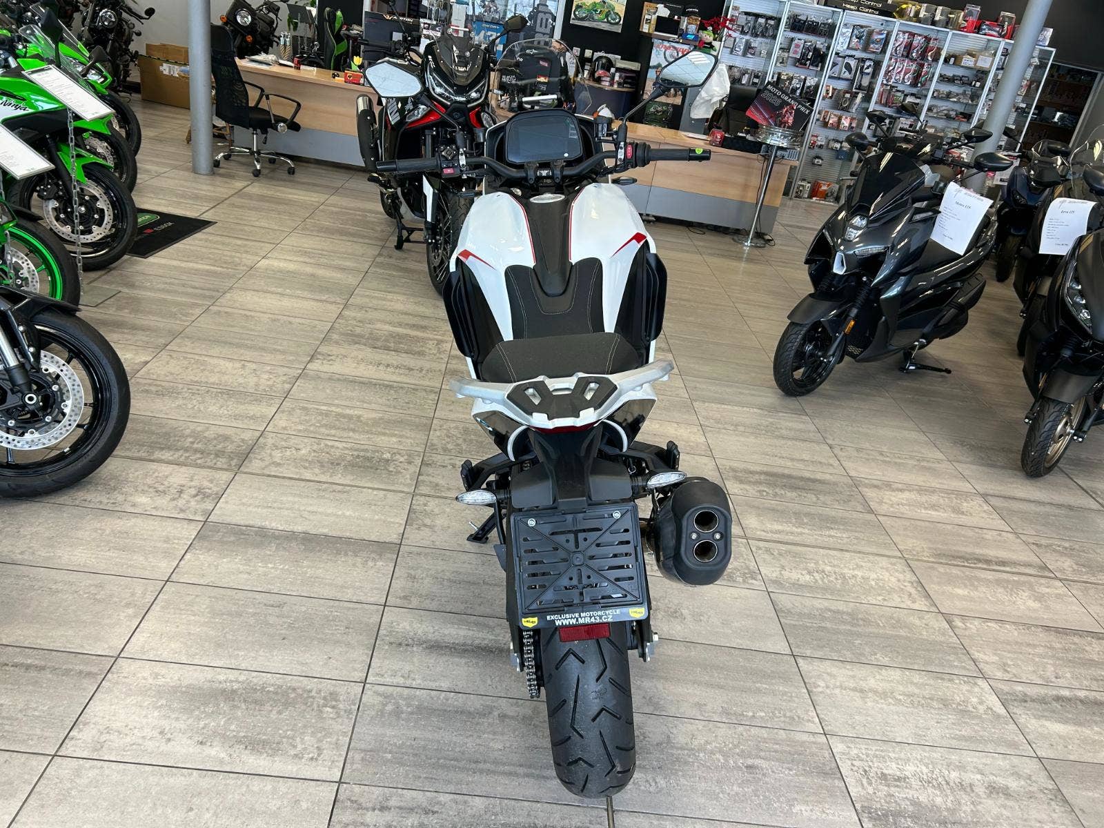 7“ TFT displej, obousměrné rychlořazení, centrální stojan, třístupňové vyhřívání rukojetí chráněných velkoplošnými blástry, vyhřívaná sedla řidiče i spolujezdce, jednou rukou nastavitelné plexi, tempomat, senzory tlaku v pneumatikách nebo zadní radar varující světýlky v zrcátkách před vozidlem v mrtvém úhlu. A to není vše, displej umí i integrovanou navigaci prostřednictvím appky pro iOS i Android, jsou tady také dva USB porty (A a C), přisvěcování do zatáček nebo přední kamera nahrávající nepřetržitě až 15 hodin záznamu.