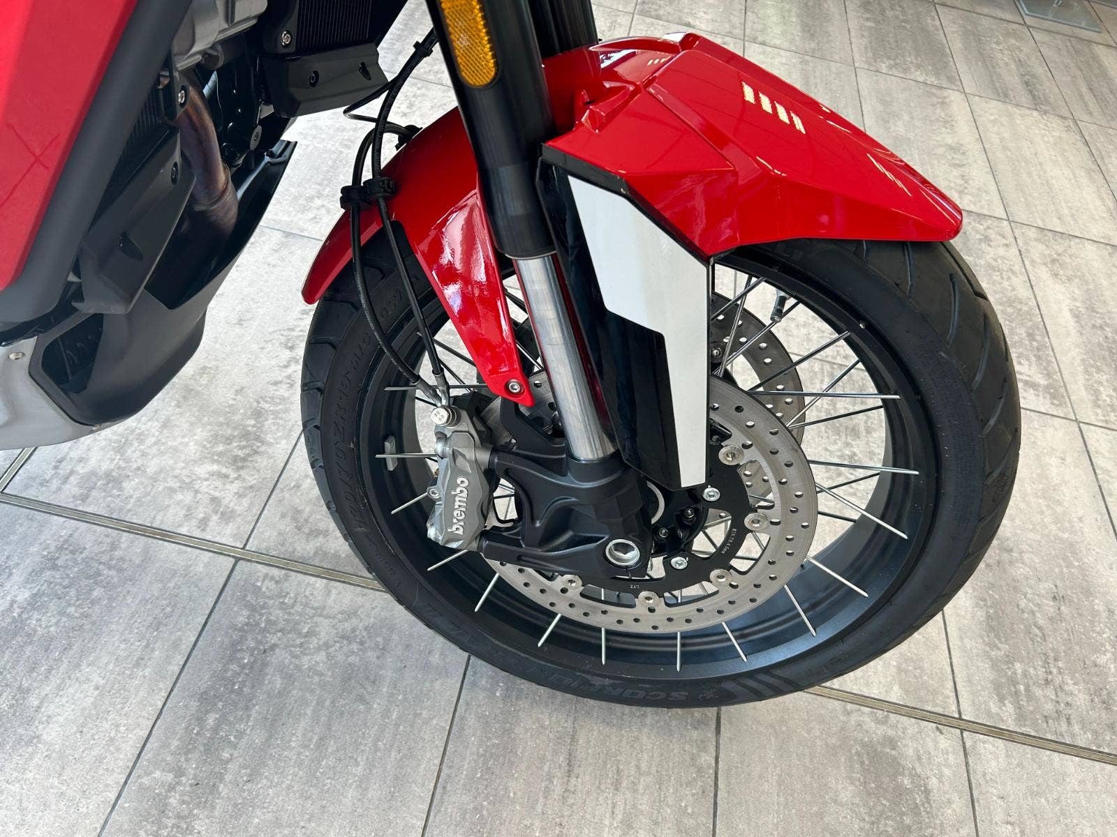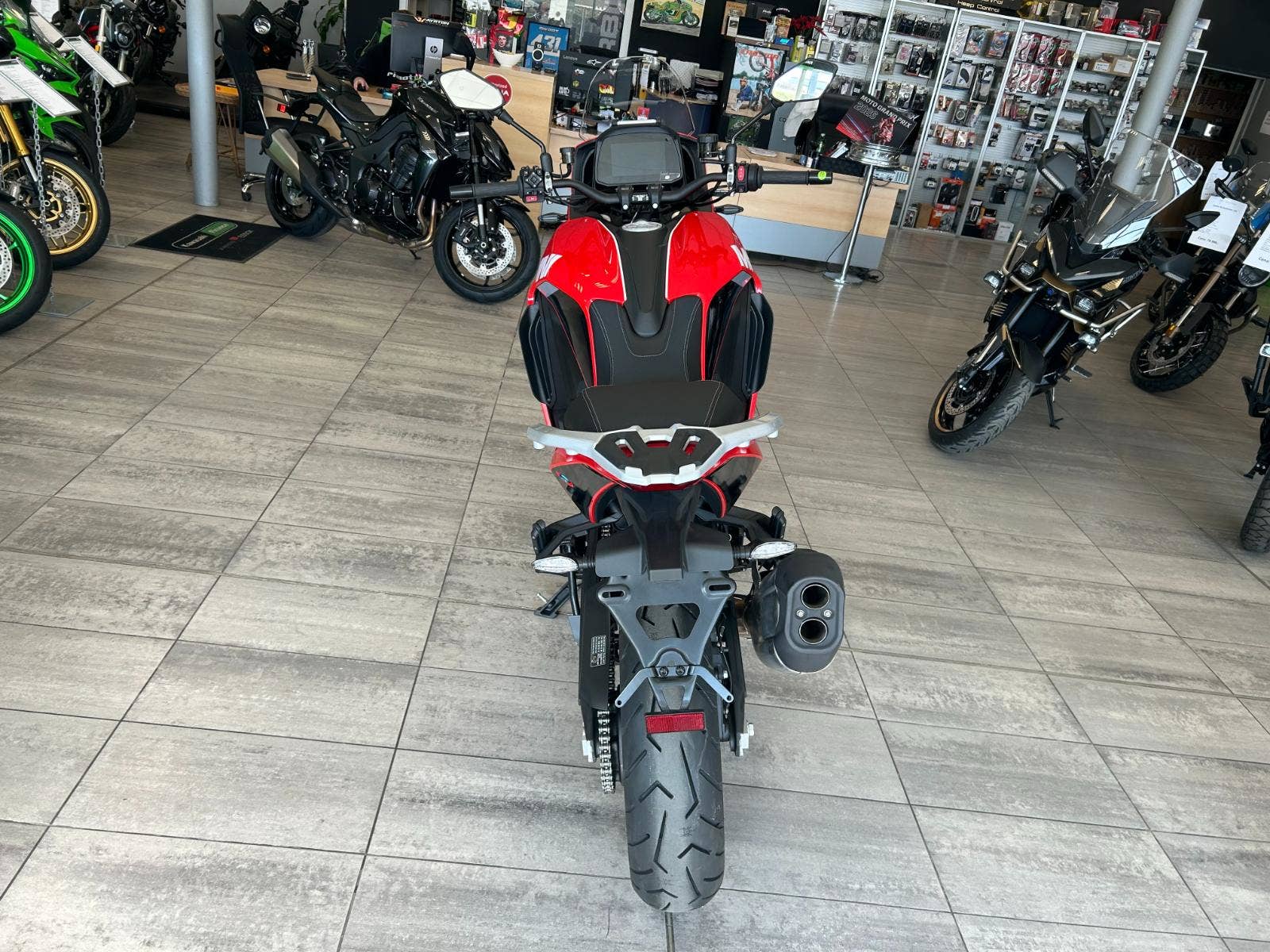 7“ TFT displej, obousměrné rychlořazení, centrální stojan, třístupňové vyhřívání rukojetí chráněných velkoplošnými blástry, vyhřívaná sedla řidiče i spolujezdce, jednou rukou nastavitelné plexi, tempomat, senzory tlaku v pneumatikách nebo zadní radar varující světýlky v zrcátkách před vozidlem v mrtvém úhlu. A to není vše, displej umí i integrovanou navigaci prostřednictvím appky pro iOS i Android, jsou tady také dva USB porty (A a C), přisvěcování do zatáček nebo přední kamera nahrávající nepřetržitě až 15 hodin záznamu.