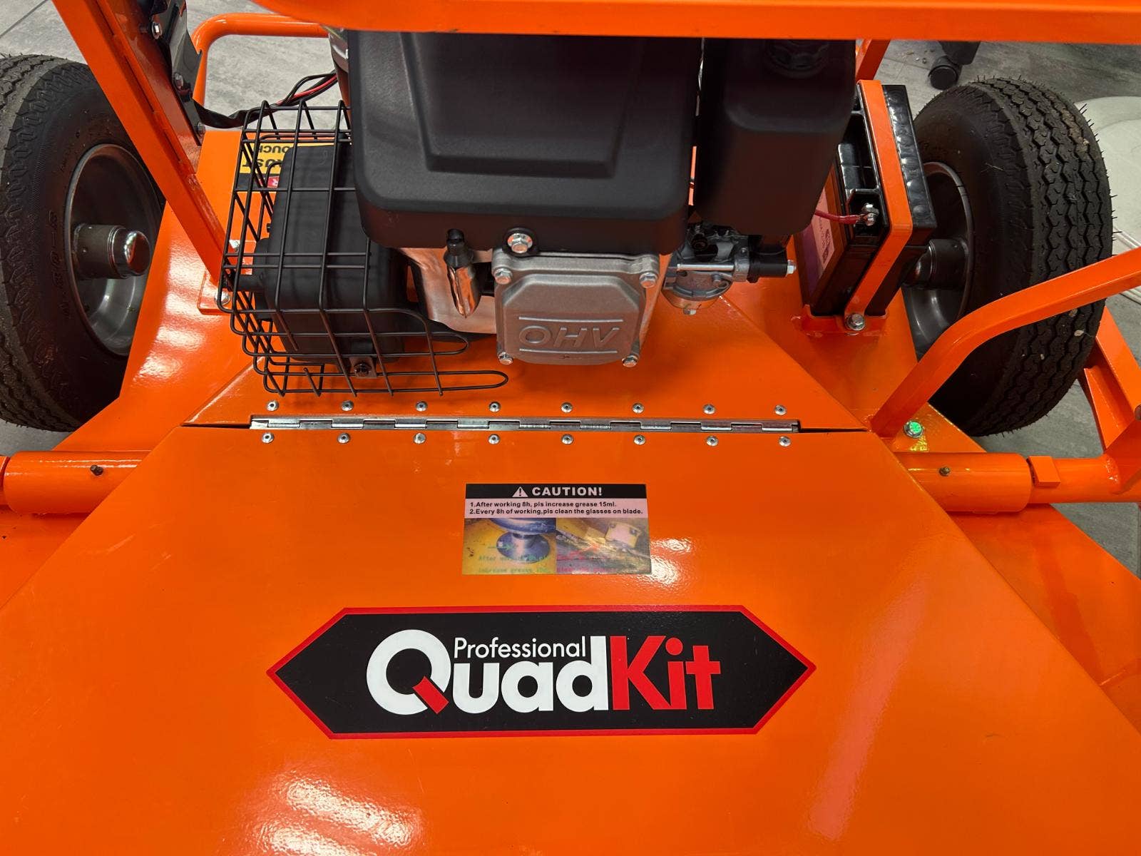 Sekačka se záběrem 117 cm, třemi rotujícími sekacími noži a nezávislým zážehovým motorem o výkonu 16 koní z řady profesionálního příslušenství QuadKit. Vhodná za čtyřkolku, UTV, SSV i traktůrek.