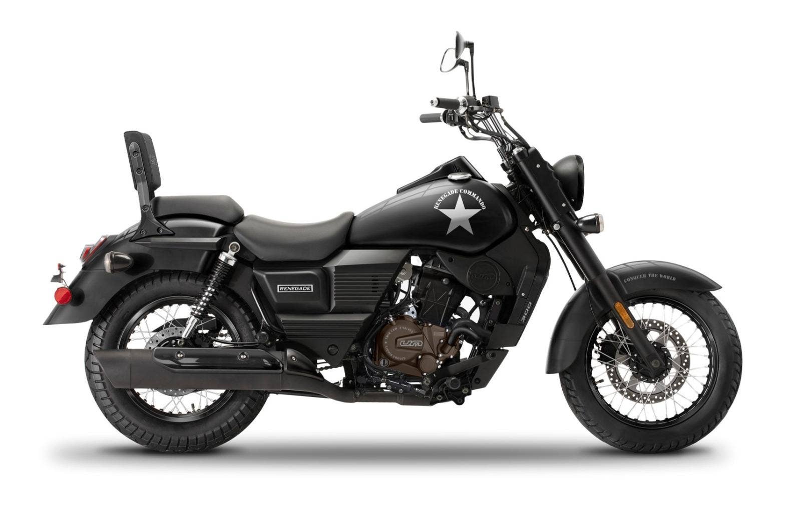 Přední brzda s radiálně uchyceným dvoupístkovým plovoucím třmenem a robustním 280 mm kotoučem zajišťuje precizní a bezpečné brždění na každém povrchu. Motocykl Renegade Commando je vybaven nejlepší technologií pro zajištění vaší bezpečné jízdy: oválná zrcátka, která eliminují mrtvý úhel, systém proti ztrátě tlaku v pneumatikách Anti-Flat System. A tak se pohodlně usaďte do sedla a vychutnejte si jízdu, my na vás dáváme pozor.
