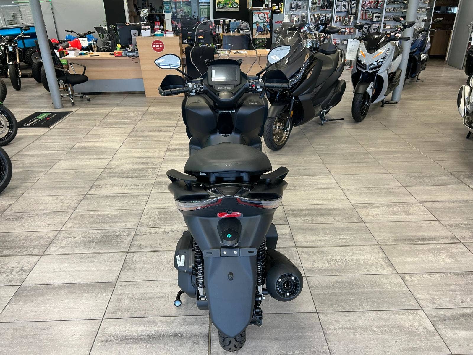Nízký objem, skvělé vybavení! Kompletní výbava, systém bezklíčového startování, elektricky nastavitelná obrazovka, USB zásuvky, centrální stojan, elektrická klapka paliva, barevná TFT obrazovka… Vše standardně! Využijte naplno svůj skútr. Pokud jde o bezpečnost, není třeba se obávat, plné LED osvětlení vám poskytne lepší přehlednost v noci a zároveň bude viditelnější pro ostatní účastníky silničního provozu. Přední a zadní kotoučové brzdy s ABS zaručují naprostou kontrolu. TFT obrazovka zobrazuje tlak v pneumatikách v reálném čase, což vám umožní vyrazit na silnici s klidem.